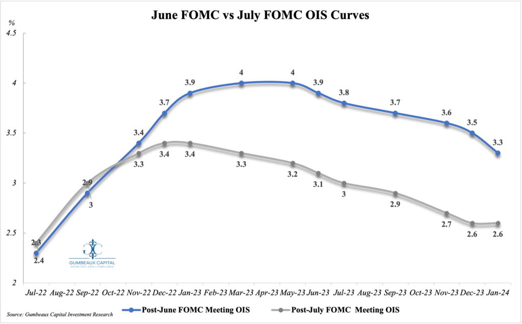 Assuming that we will continue our inflation data trajectory, and continue to get a price-stability-oriented Fed, we can extrapolate that we may see a case to where the Fed may not have to be as aggressive versus the picture we saw in June (see Figure 3).