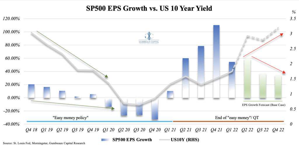 Our forecasts are not to say that equities have an outright pessimistic outlook going into the latter half of H2 2022 and H1 2023, as we saw very few proponents for equities going into H12022. Yes, financial conditions are getting tighter amidst a broad based rise in cost of capital and slight demand destruction, but it is key to note that the US is still in a position to outperform the rest of the world in terms of earnings growth. This will certainly maintain ample levels of inflows into US capital markets. Equities are positioned to simply take another “breather”, although high quality (healthy margins, high operating leverage, and warrantable valuations etc. ) equities can see excess yield within this environment. All-in-all a move higher in the capital structure and a tactical tilt towards government bonds (2s/10s flatteners) may provide great risk-adjusted opportunities for investors.